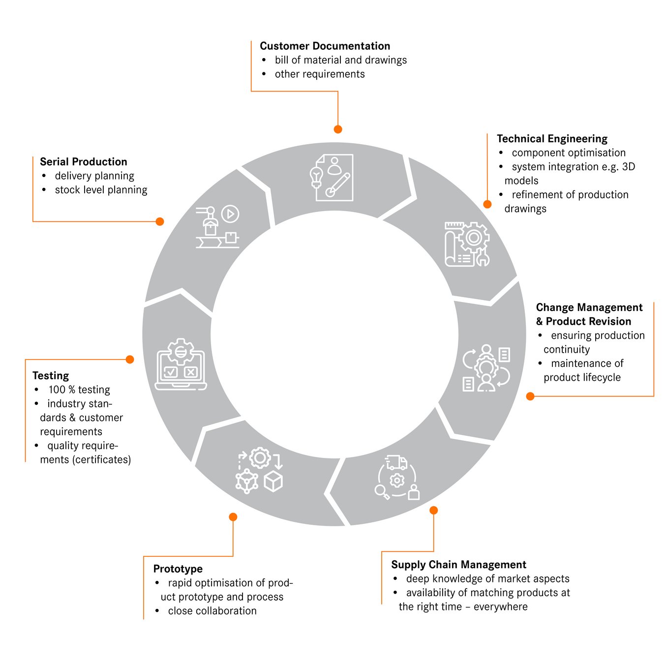 Som kunde trenge du kun forholde deg til en leverandør. Våre prosesser er godt testet for sikker leveranse og sikrer en smidig produksjonsflyt for deg som kunde.